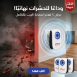 قل وداعاً للآفات! عرض الــ 4 مبيد الحشرات بالموجات فوق الصوتية هو الحل الأمثل للحفاظ على منزلك نظيفاً وخالياً من الحشرات والقوارض. سهل الاستخدام وفعال في مساحات واسعة.”