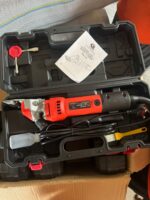 الماكينة، زيت، فرشاة تنظيف، مفك، فحمات كاربون احتياط، حقيبة حمل.