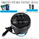 ✅ يحول تيار السيارة المستمر 12-24 فولت لتيار متردد 110-220 فولت، يعطيك طاقة مستقرة وقوية لكل أجهزتك.
