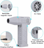 منفاخ الهواء يشتغل بمحرك قوي يوصل سرعته لـ 110,000 RPM، يعني ينفخ أي شي بثواني قليلة، من إطارات السيارات إلى الألعاب القابلة للنفخ، وحتى الغبار اللي بالمناطق الصعبة.