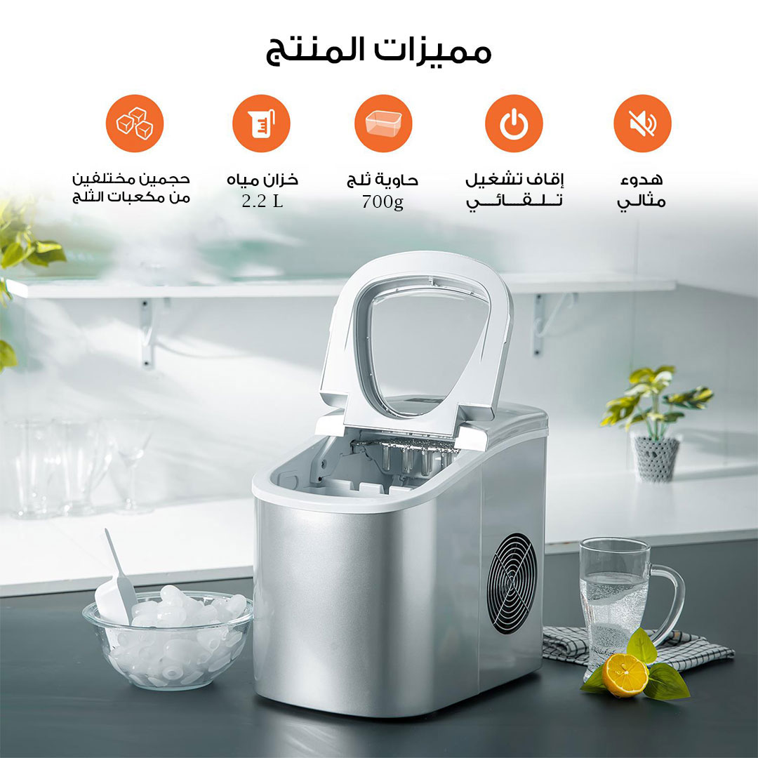 • تصنع كمية كبيرة من الثلج في وقت قصير بفضل سعتها (2.2 لتر).