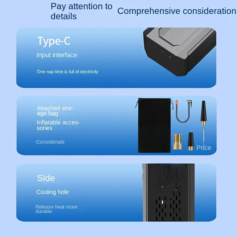 • تصميم متين ومحمول: تصميم خفيف الوزن وسهل الحمل، يمكنك وضعه في سيارتك واستخدامه عند الحاجة.