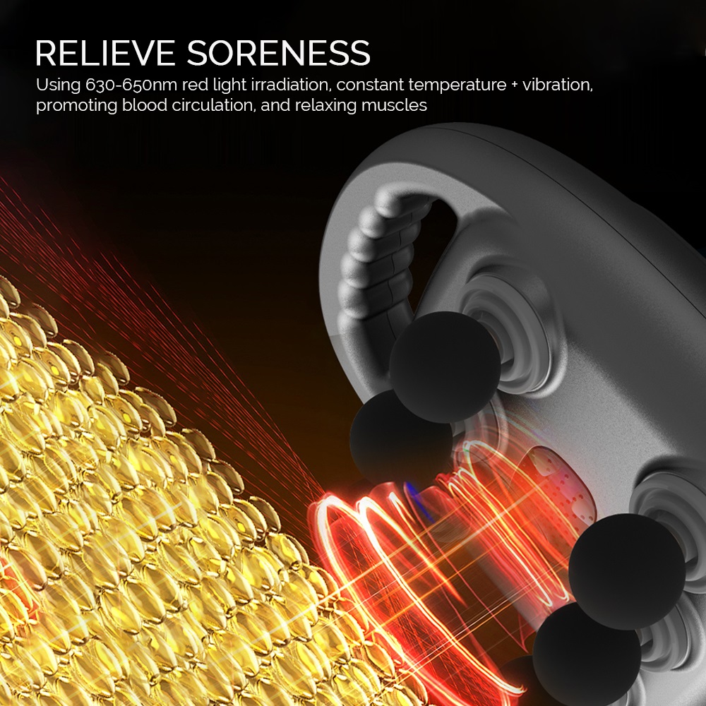 الجهاز مصمم بـ 6 رؤوس مرنة بتتحرك بانسيابية، عشان تقدر توصل لكل مناطق الجسم بسهولة، سواء الضهر، الرقبة، الكتف، أو حتى القدمين، وتاخد تجربة تدليك شاملة من غير مجهود!