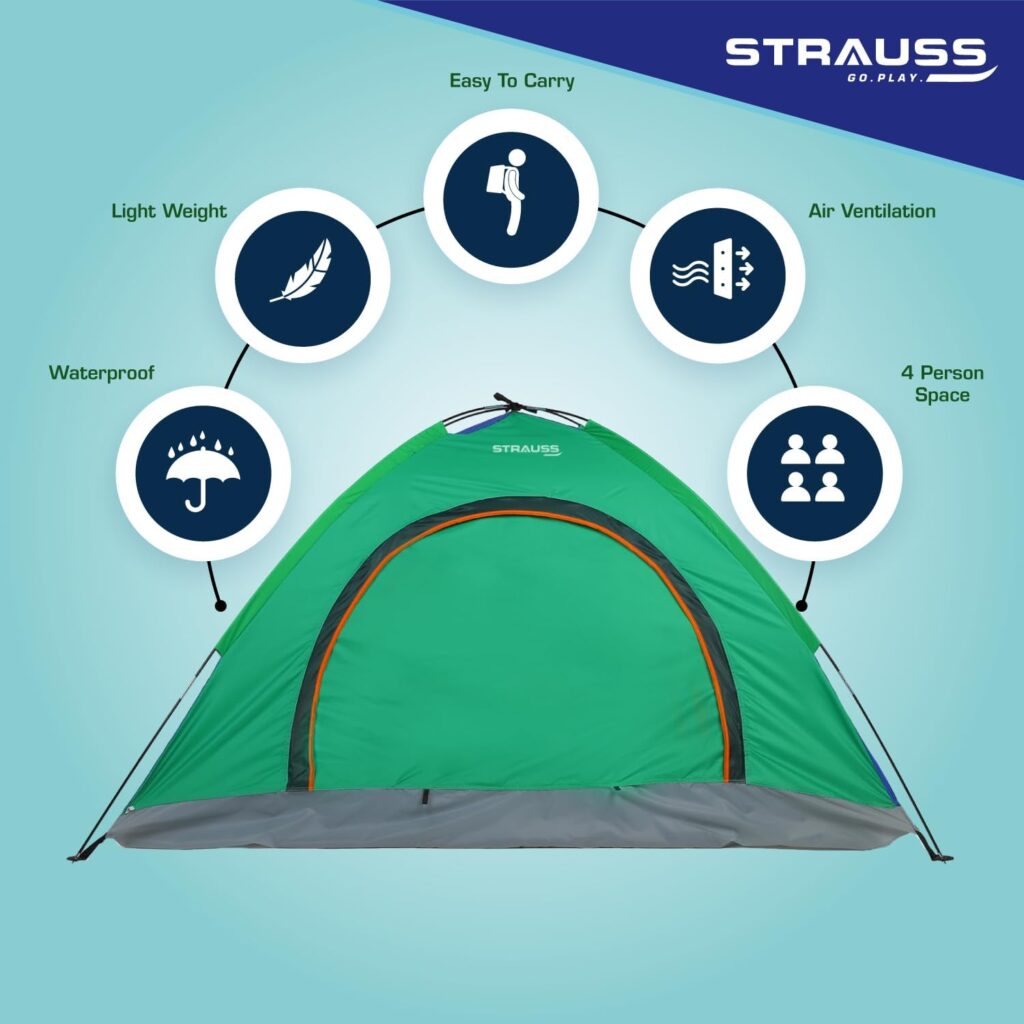 لي رحلاتك ومغامراتك أريح وأسهل مع خيمة التخييم العملية.. تسع 4 أشخاص بكل راحة وبوقت قصير تكون جاهزة للاستعمال!”