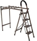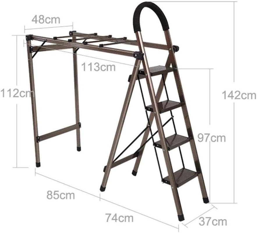 تصميم 2-في-1: سُلَّم 4 درجات + منشر ملابس علوي قابل للطي—تنجز أعمال البيت وتعلّق الغسيل من نفس القطعة. 🛠️👚