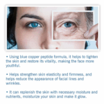 السيروم غني بببتيد النحاس (GHK-Cu) المعروف بقدرته على تحفيز إنتاج الكولاجين والإيلاستين، فيقلل ظهور الخطوط الدقيقة ويشد البشرة بفعالية.
