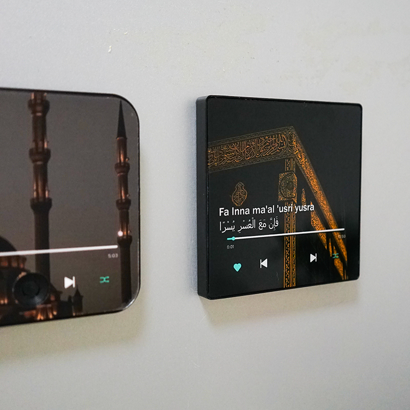 تصميم عملي ينثبت بسهولة على الثلاجة أو أي سطح مغناطيسي ويشغّل القرآن بكل سلاسة.