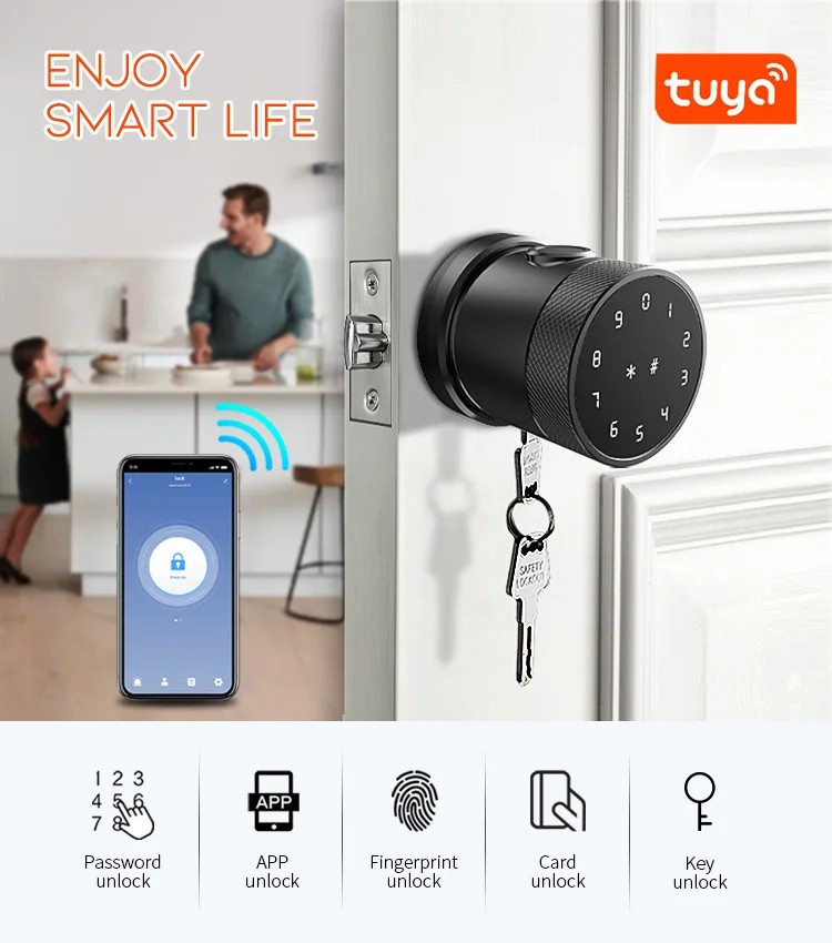 يفتح بأكثر من طريقة وبشكل سريع وآمن، وكل شي تراقبه من تلفونك عبر تطبيق Tuya.