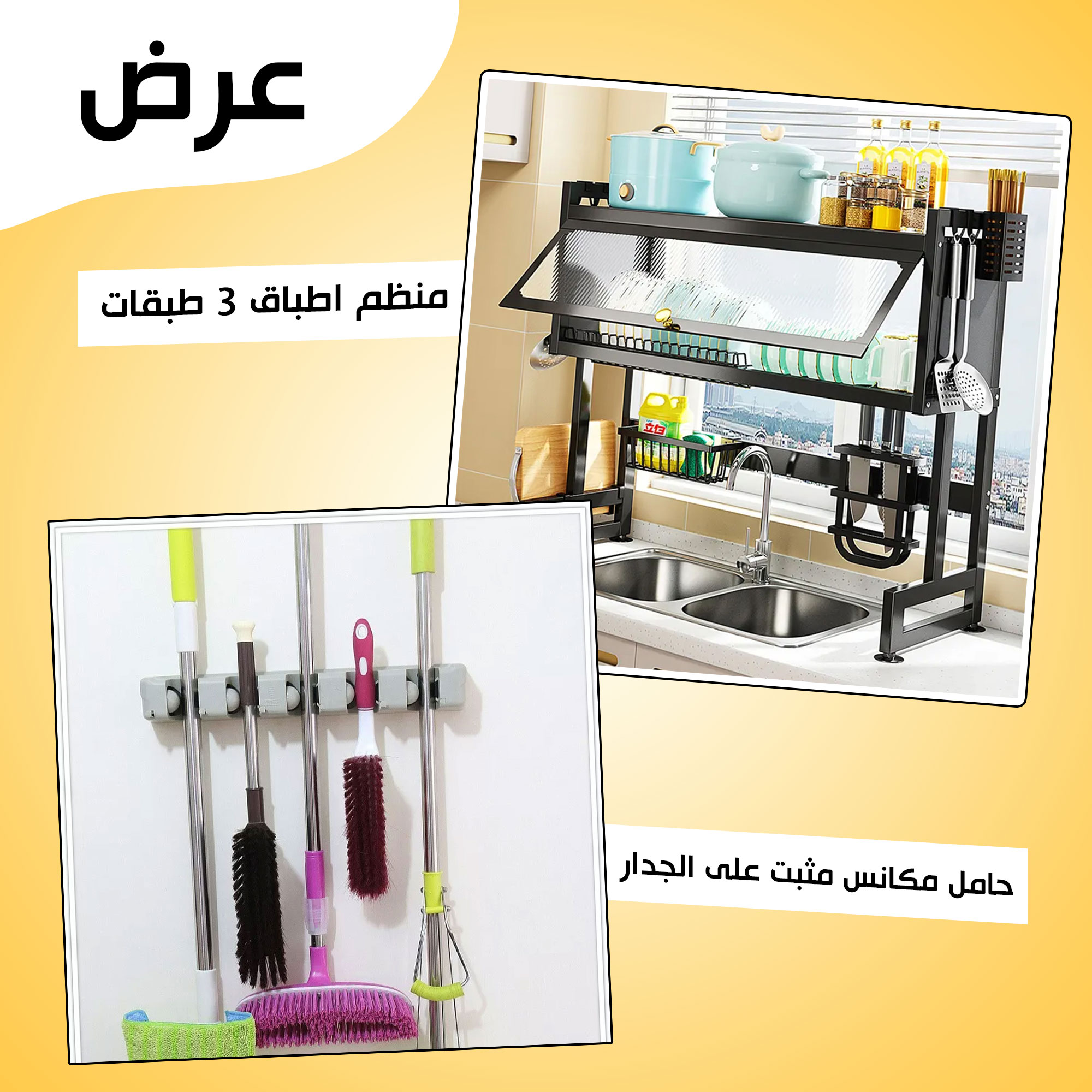 اجعلي مطبخك دائما مرتب مع عرض حامل المكانس ومنظم الأطباق، اطلبيه الحين.