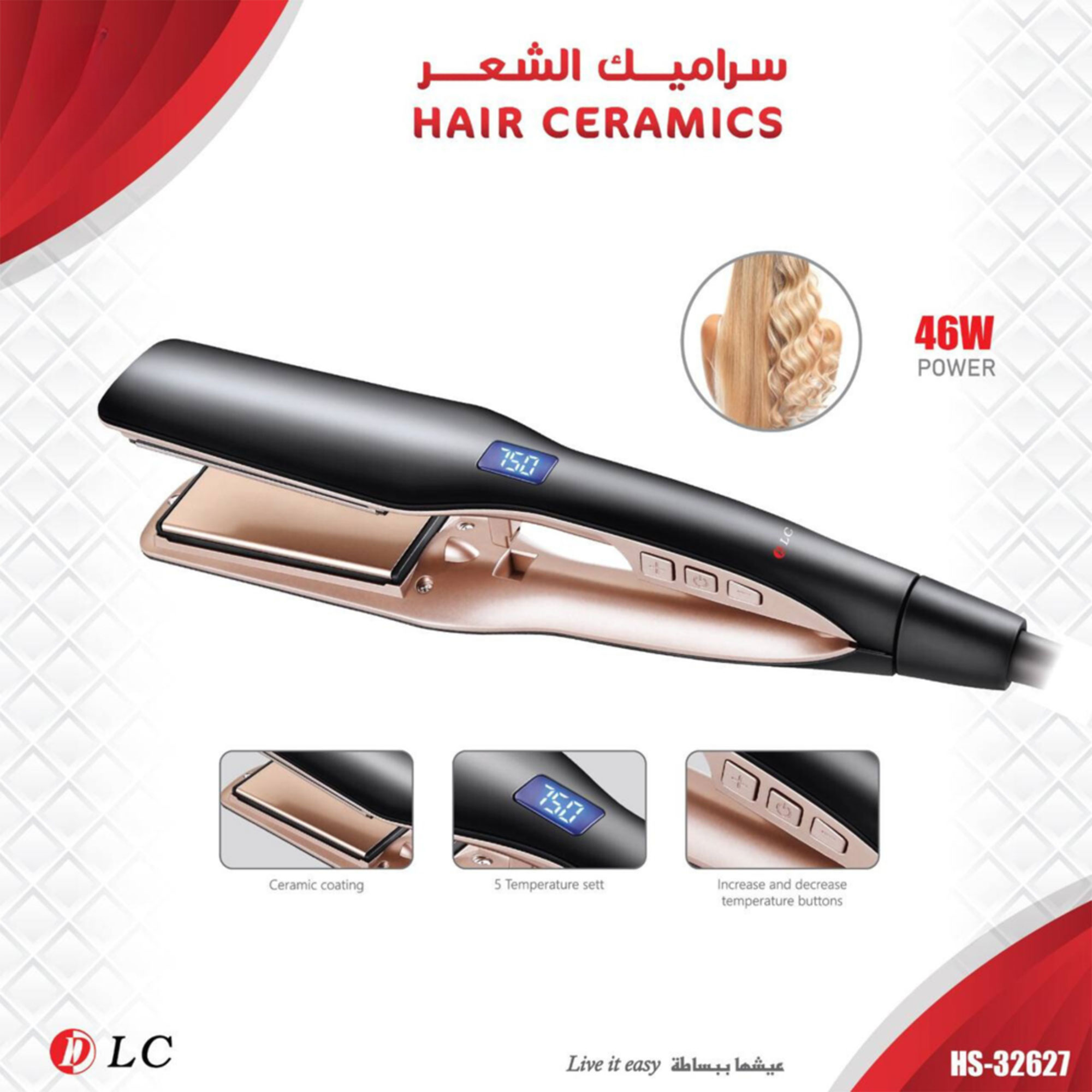 1 x مكواة فرد الشعر DLC HS-32627