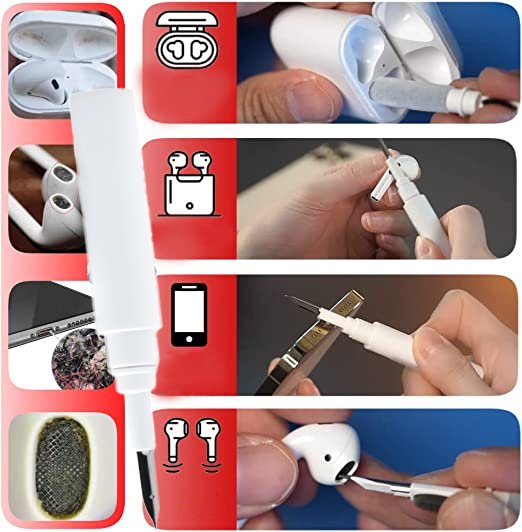 قلم لتنظيف مجموعة سدادات الأذن بالبلوتوث بأكملها، من الفتحة الصغيرة في سدادة الأذن إلى مكان الشحن.