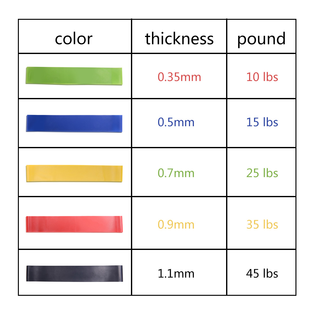 5 × أحزمة مقاومة مختلفة الألوان حسب الشدة