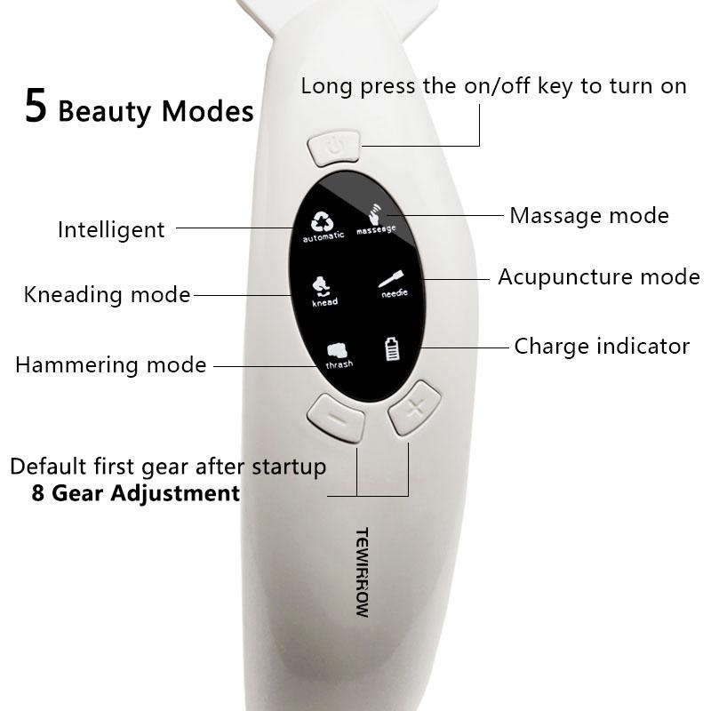 • الوظيفية: 5 أنواع (وضع التدليك التلقائي ، وضع العجن ، وضع الدفع والسحب ، وضع الوخز بالإبر ، وضع الضرب)