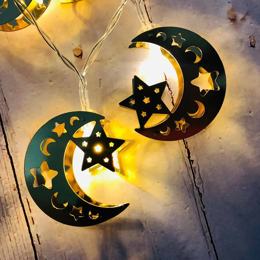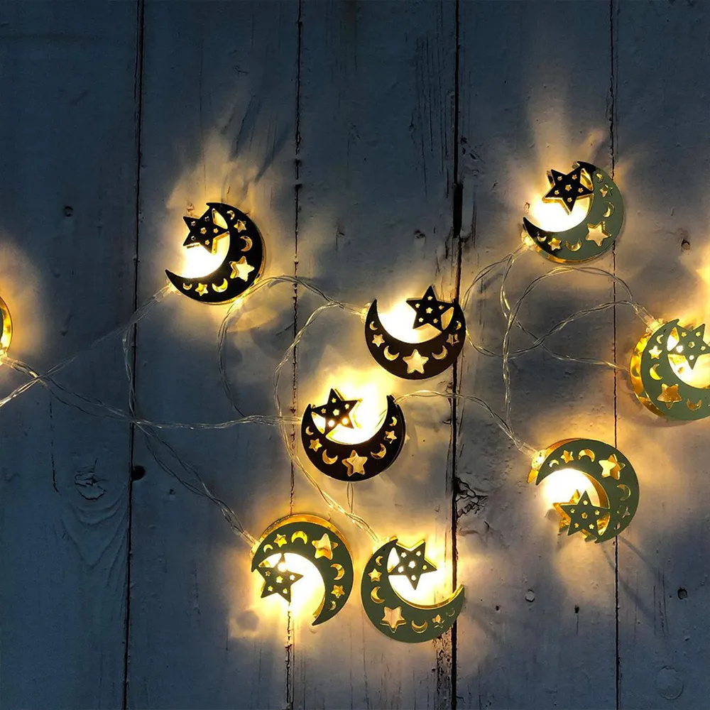 • أضف جمالًا وسحرًا إلى منزلك مع زينة مصابيح على شكل نجوم وقمر.