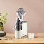 تحط الفاكهة أو الخضروات داخل العصارة، تشغل الجهاز بالكهرباء، ويبدأ العصر البطيء مع خروج العصير والبقايا بشكل تلقائي، وبعد الانتهاء يتم تنظيف القطع بسهولة.