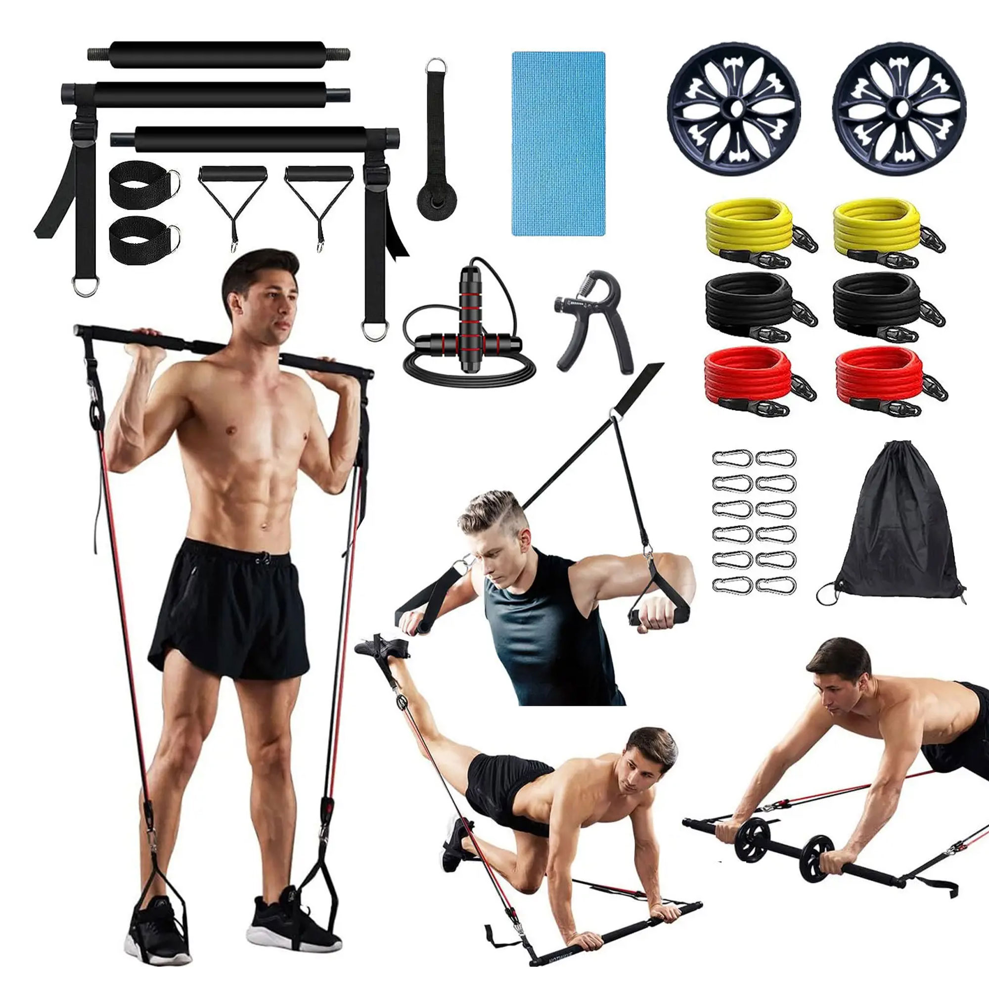 الرئيسية » المتجر » جميع المنتجات » مجموعة اللياقة المنزلية (مجموعة أدوات بيلاتيس بار + كرة اليوغا و التمارين)