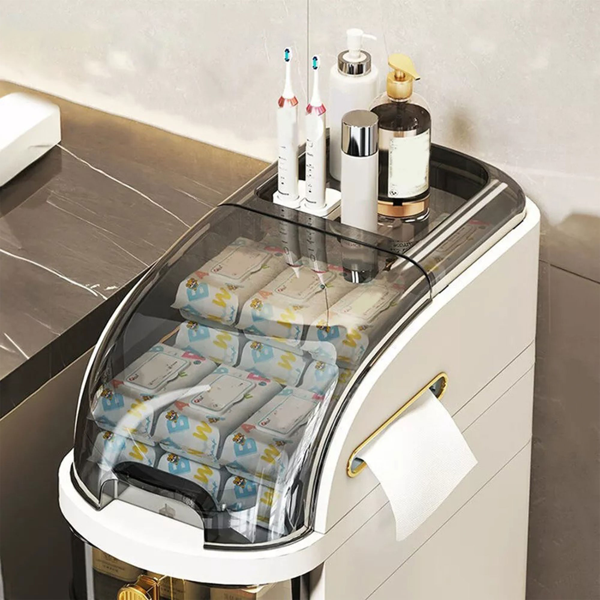 • منظم و خزانة الحمام