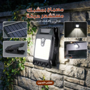 مصباح بمشبك مستشعر حركة محمول يعمل بالطاقة الشمسية