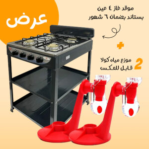 عرض موقد غاز 4 عين بستاند بضمان 6 شهور مع حبتين موزع مياه كولا قابل للعكس