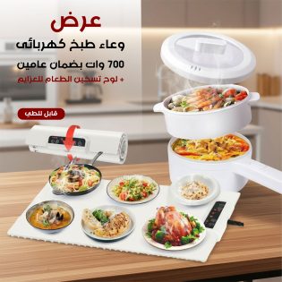 عرض وعاء طبخ كهربائى 700 وات بضمان عامين + لوح تسخين الطعام للعزايم قابل للطي