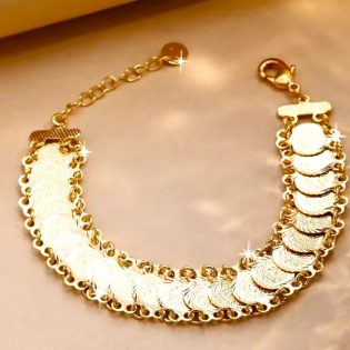 • سوار سلسلة عملات أفريقية مطلي بالذهب