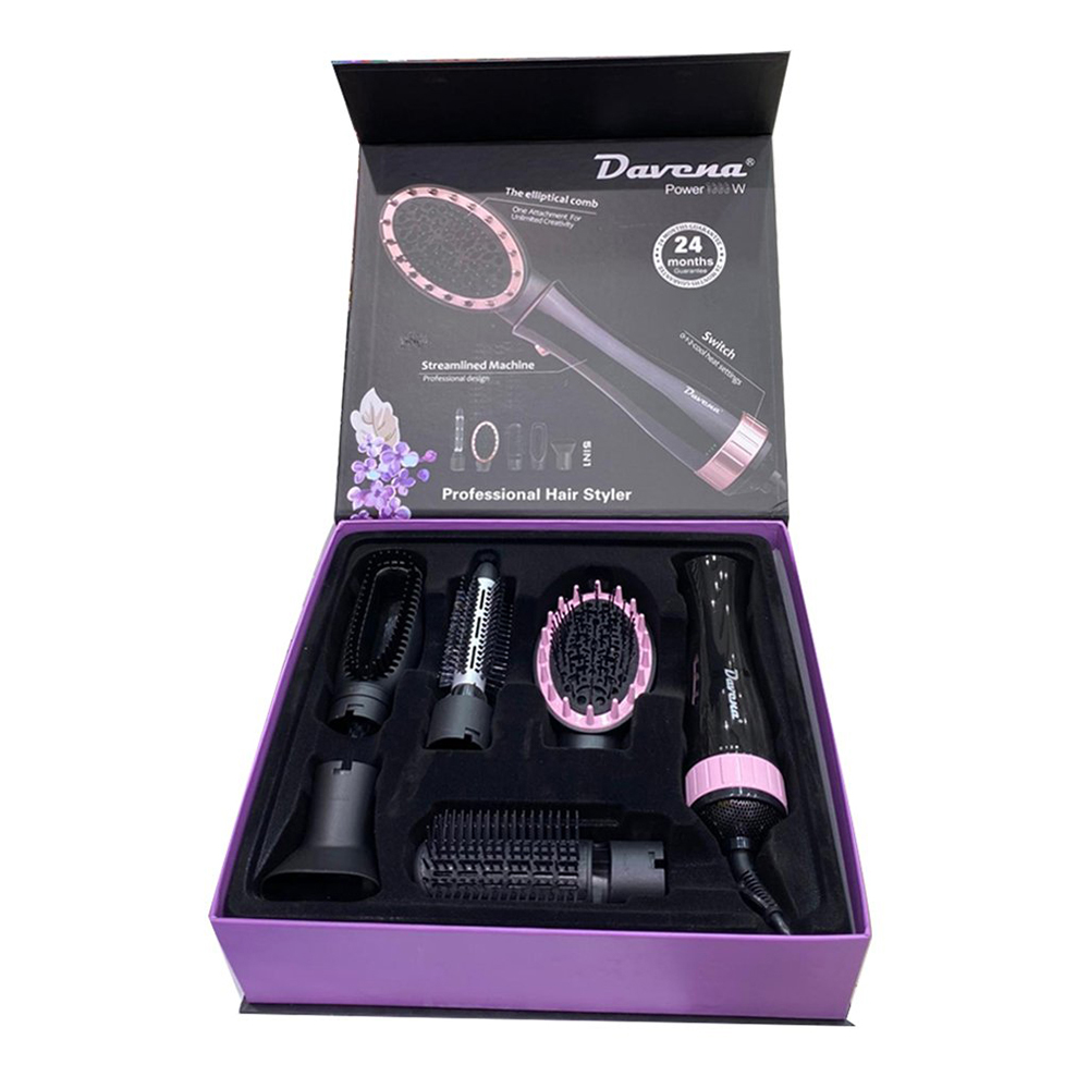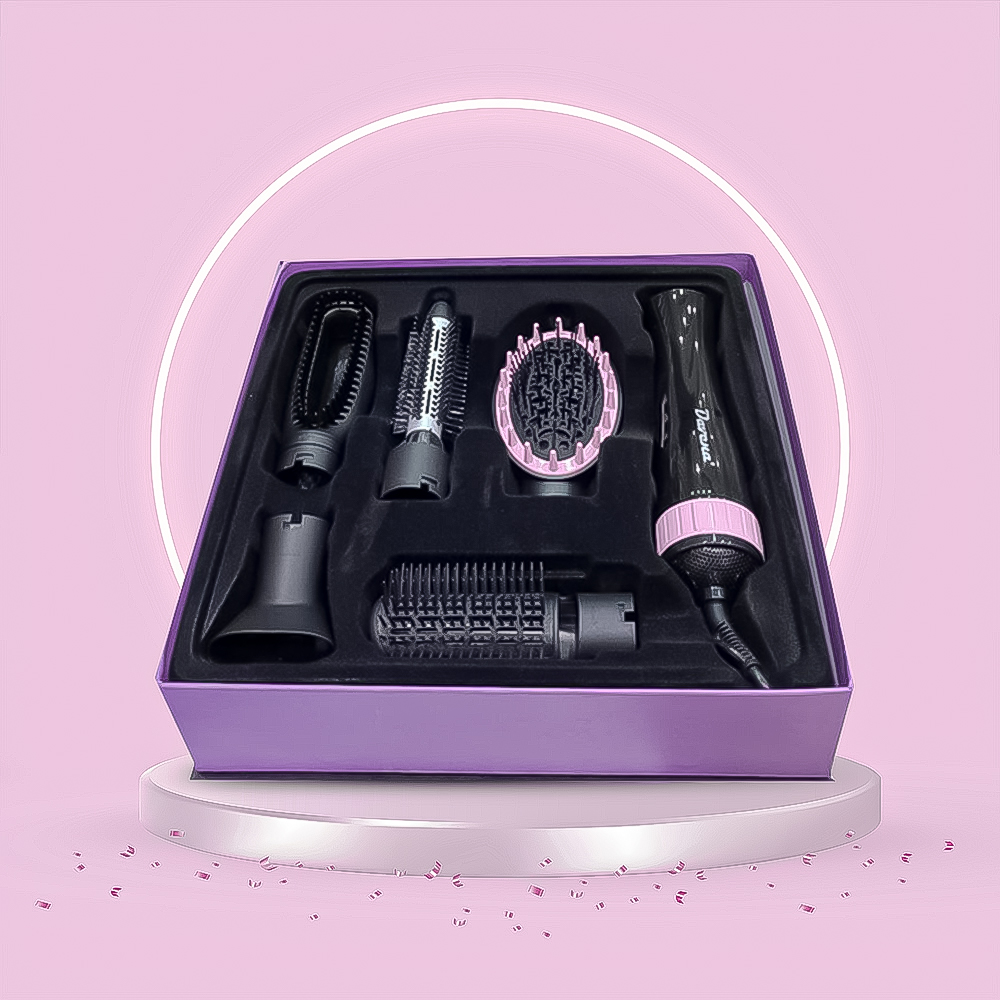 مجموعة تصفيف الشعر تأتي مع 5 رؤوس قابلة للتغيير لمساعدتك على تصفيف شعرك بأي شكل تريده . يساعدك الجهاز على تجفيف الشعر دون تعرضه للتلف أو الضرر بسبب الحرارة ، كما يمكنك جعله مموجًا أو مفرودًا و ناعمًا لإعطائك مظهراً طبيعيًا و أكثر لمعانًا .