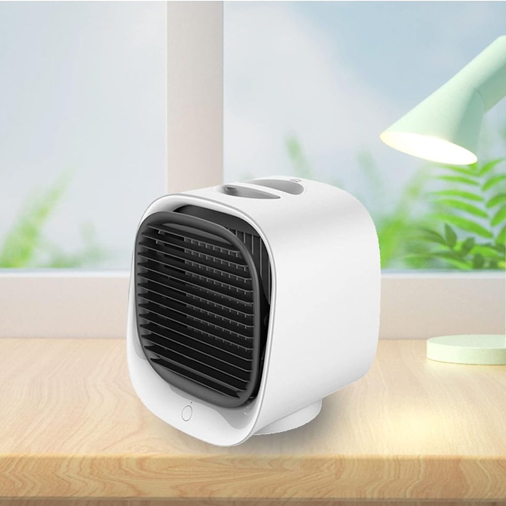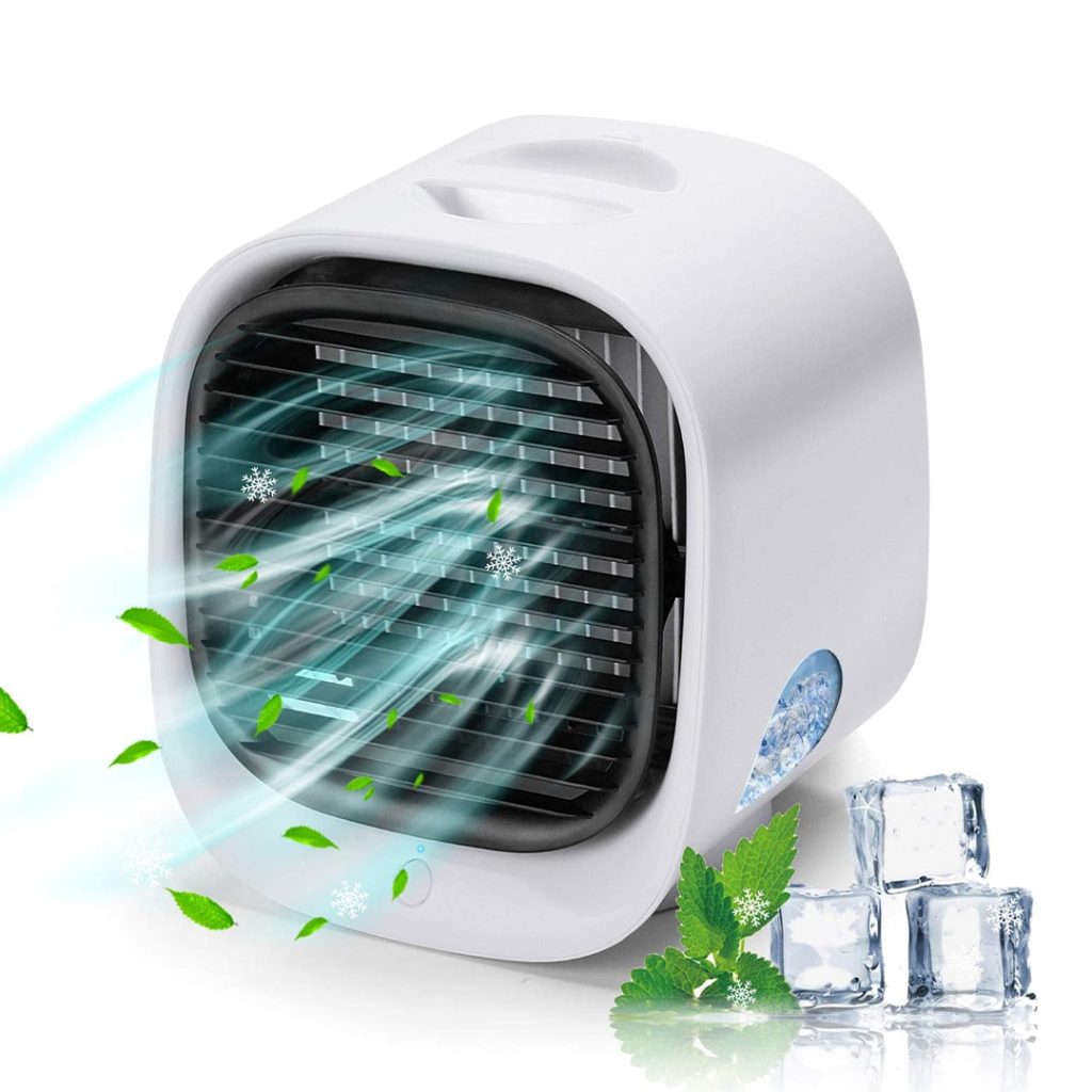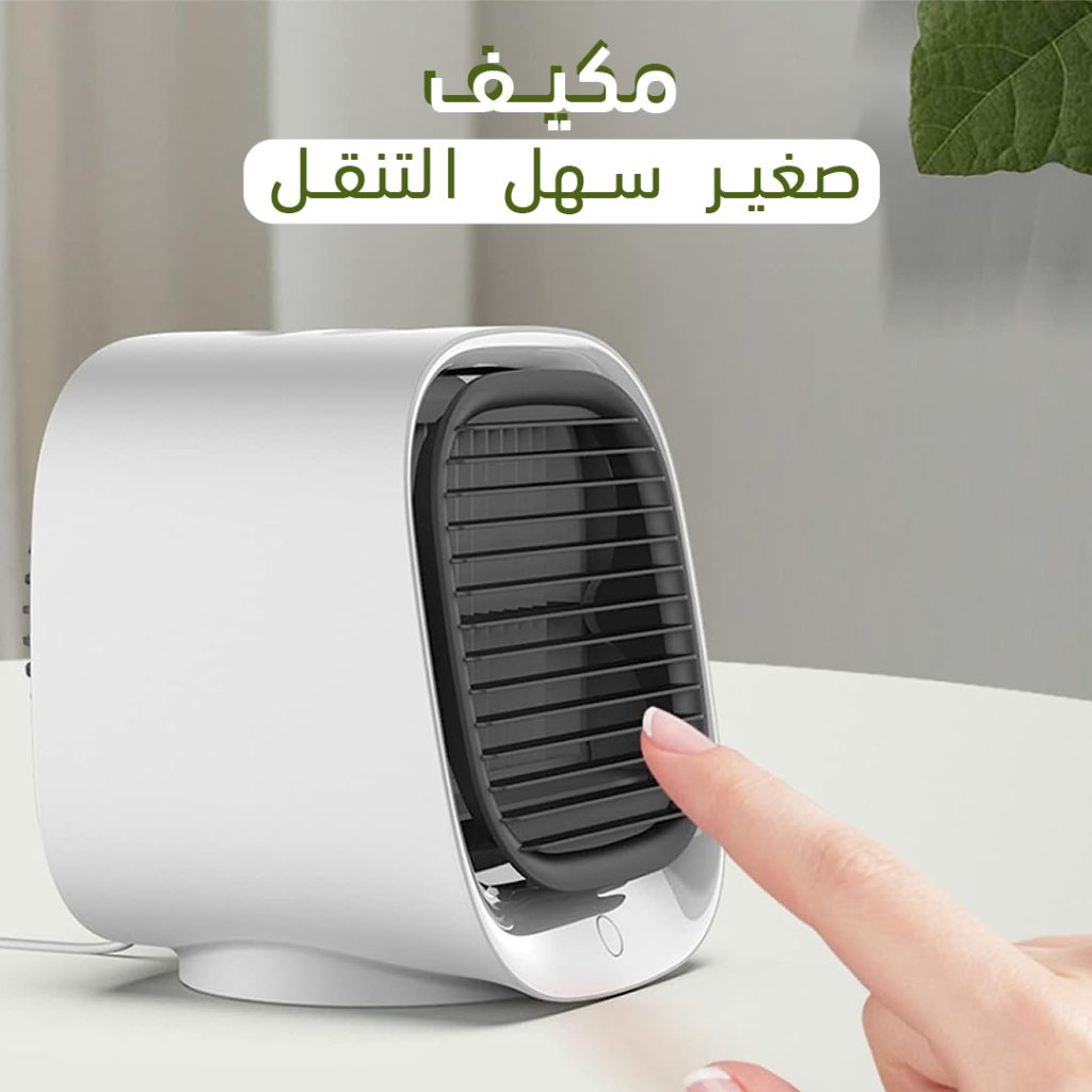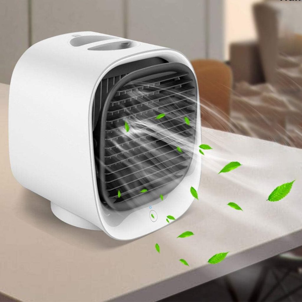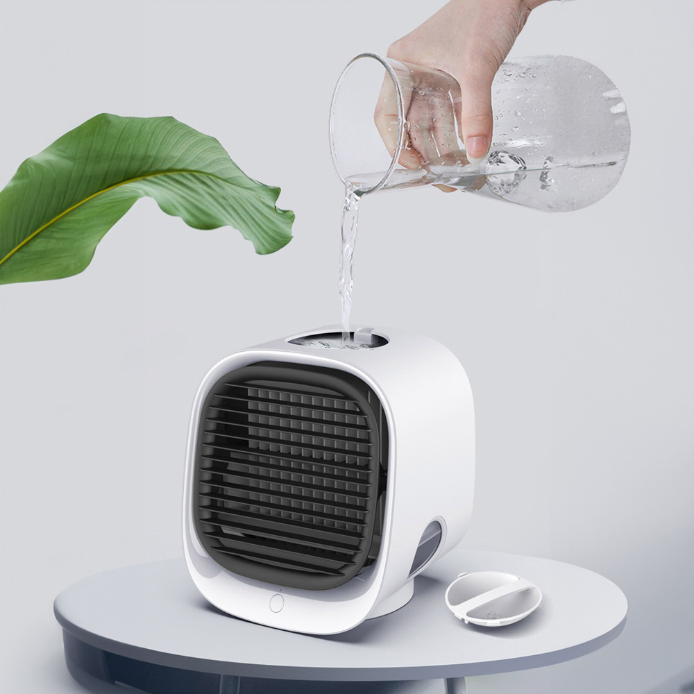 مكيف الهواء الصغير يدمج تبريد الهواء، الترطيب بالرش، وظائف التنقية ومجهز بضوء LED للجو.
