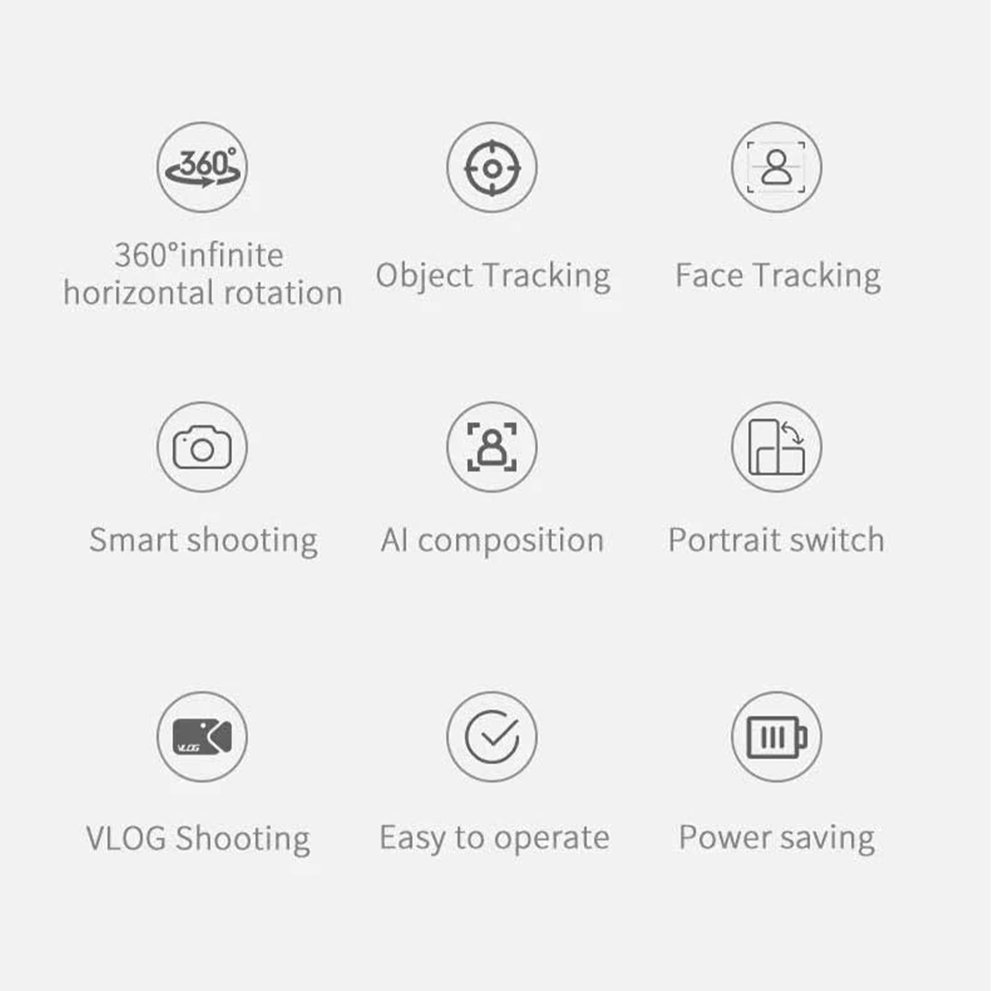 وظائف 360° دوران لا نهائي تتبع جسم ووجه تصوير ذكي AI تغيير الوضع مساعد للفلوغ