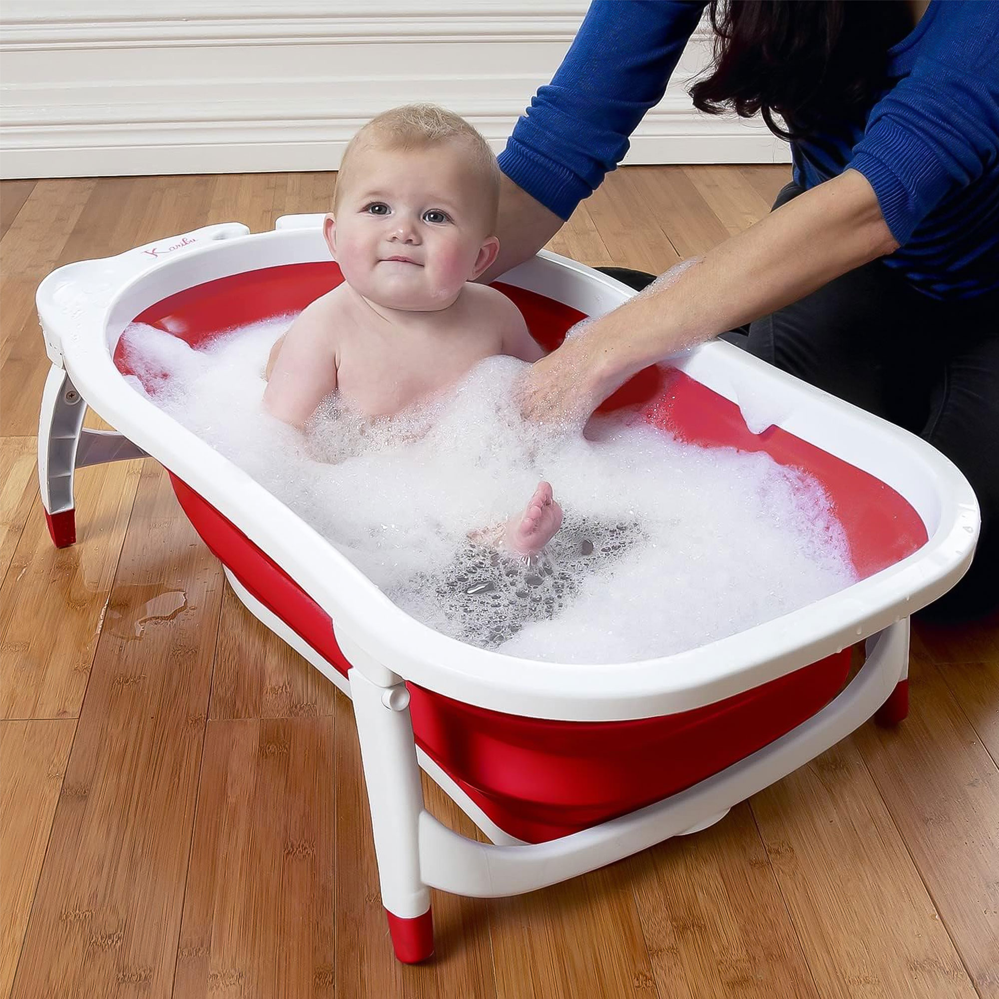 يعطي راحة وأمان للطفل وقت الاستحمام.