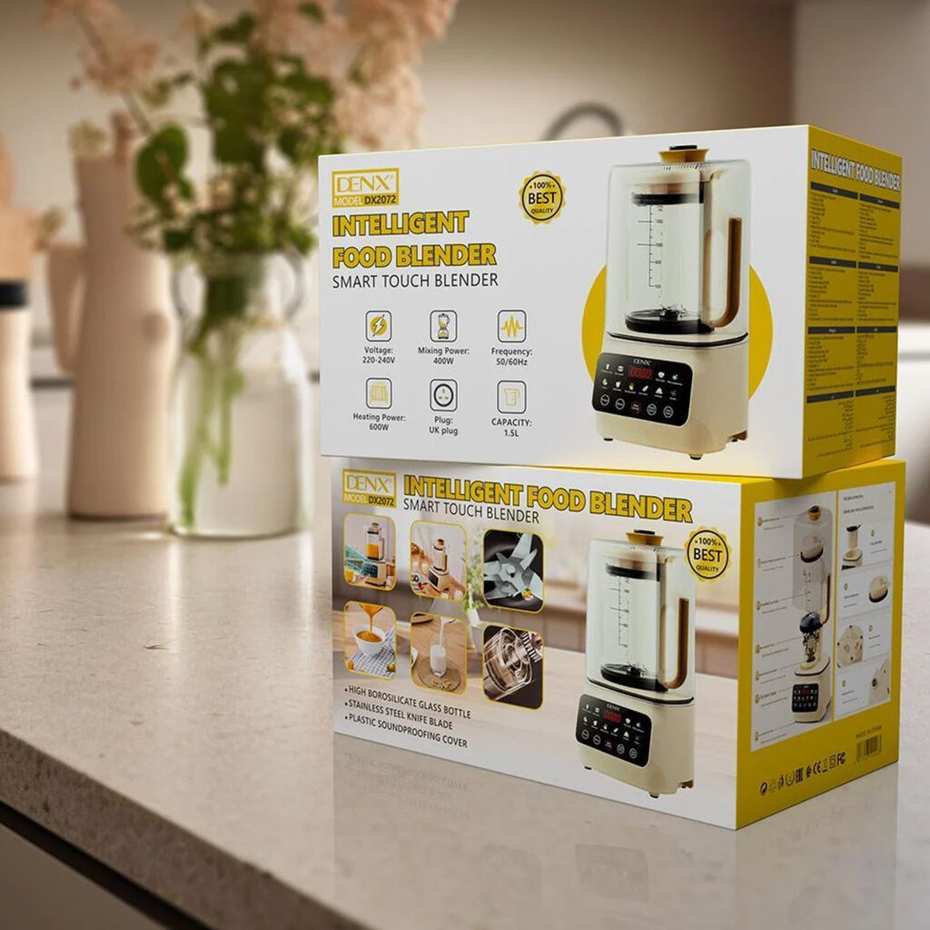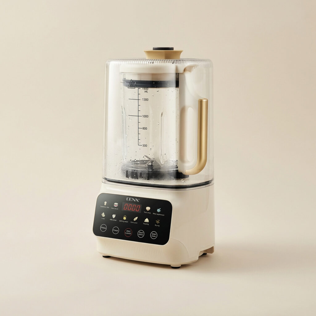 تحط المكونات داخل الكوب، تثبته بالخلاط، تختار الوظيفة المناسبة عبر لوحة اللمس، ويبدأ الخلط أو التسخين حسب الإعداد، وبعد الانتهاء تفك القطع وتنظفها بسهولة.