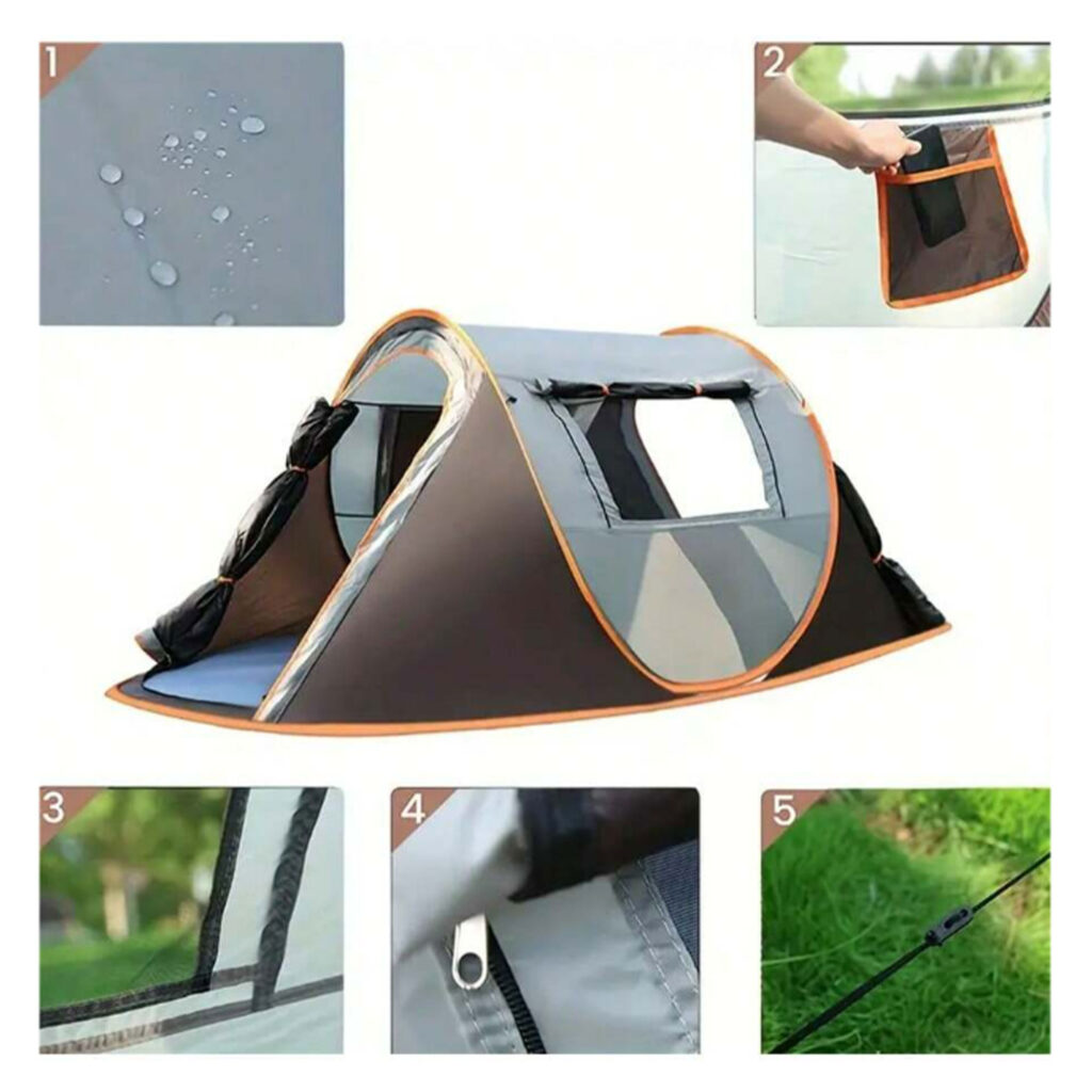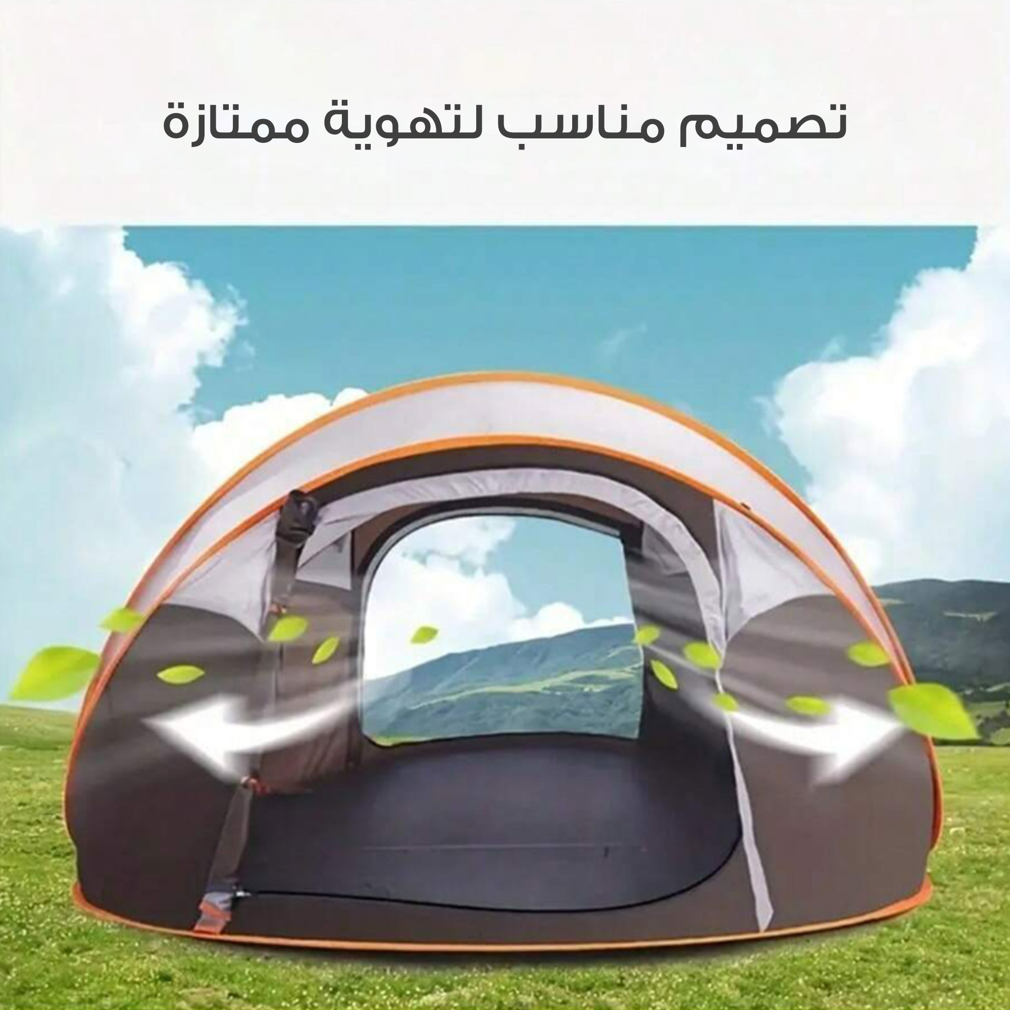 مزودة بأربعة حبال لتثبيت الخيمة بإحكام ضد الرياح.