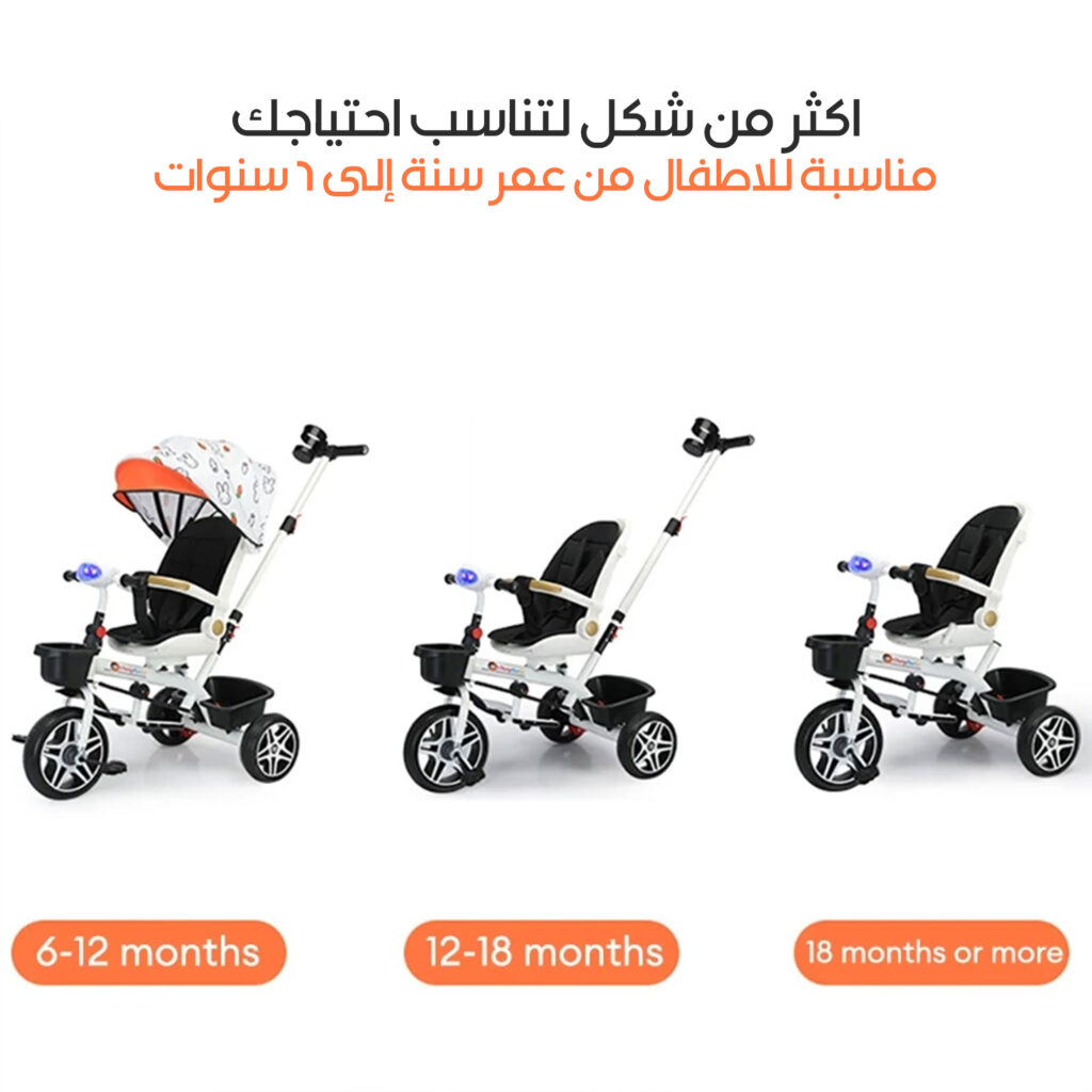 1× دراجة أطفال ثلاثية العجلات بمظلة ومقبض دفع