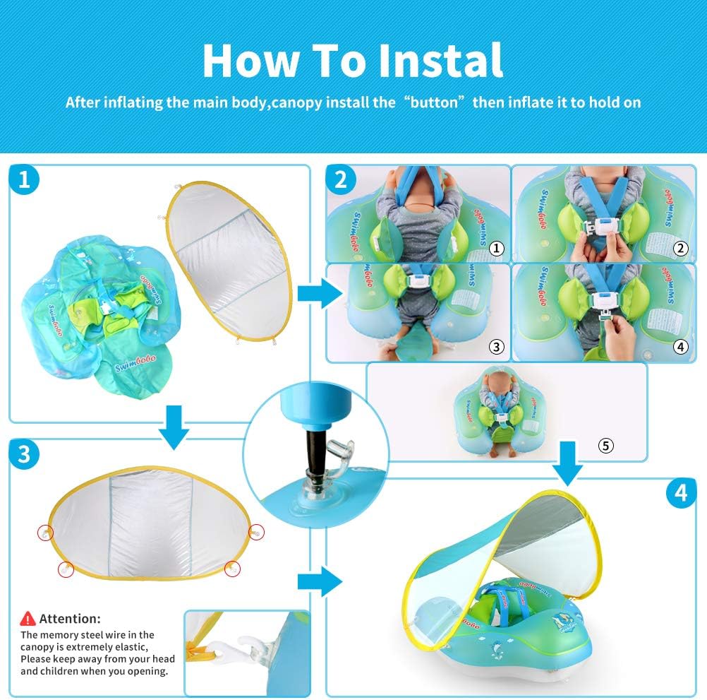 بها حلقة سباحة قابلة للفصل تمنع الطفل من الانقلاب للخلف.