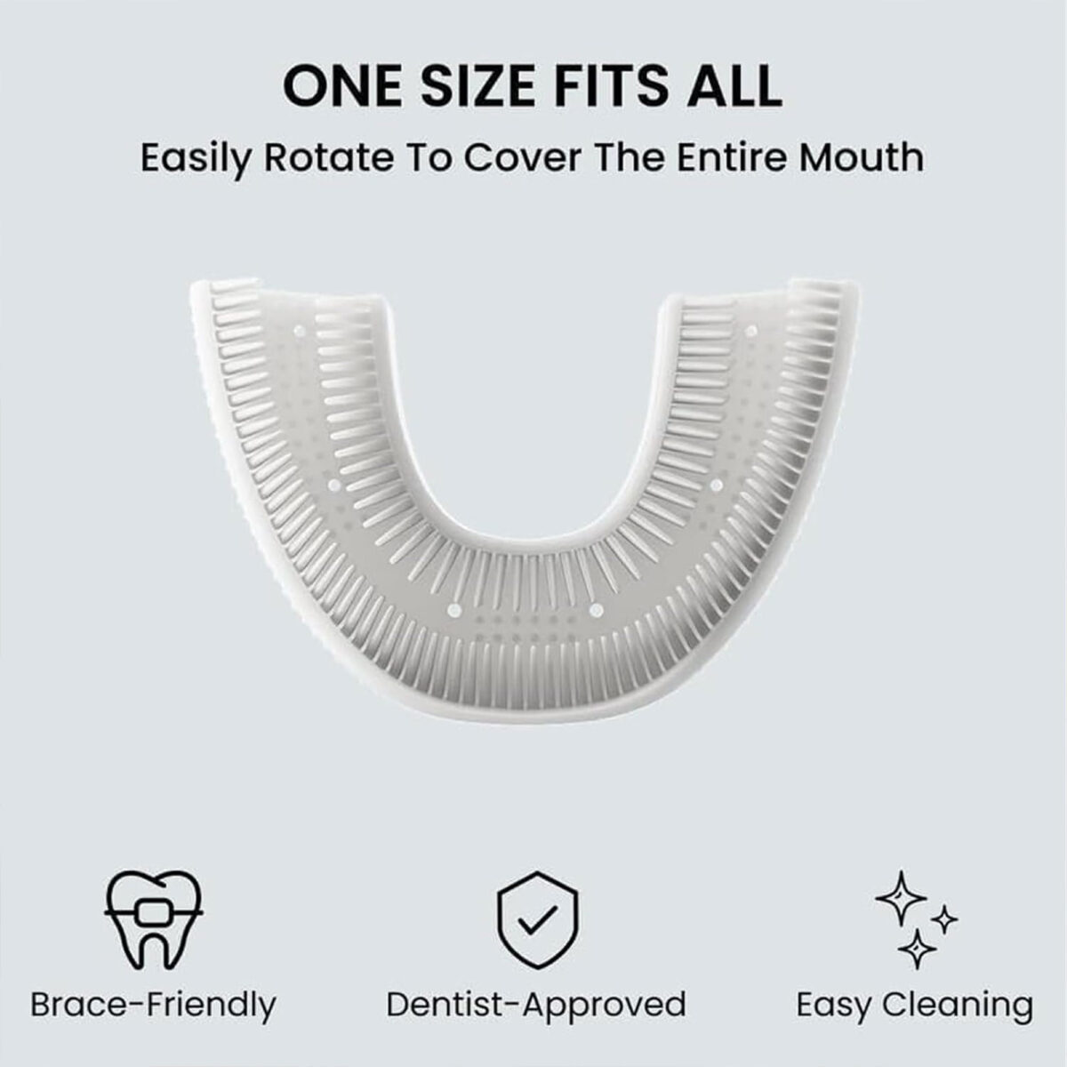• تصميم U يغطي الفم كامل وينظف بزاوية 360.