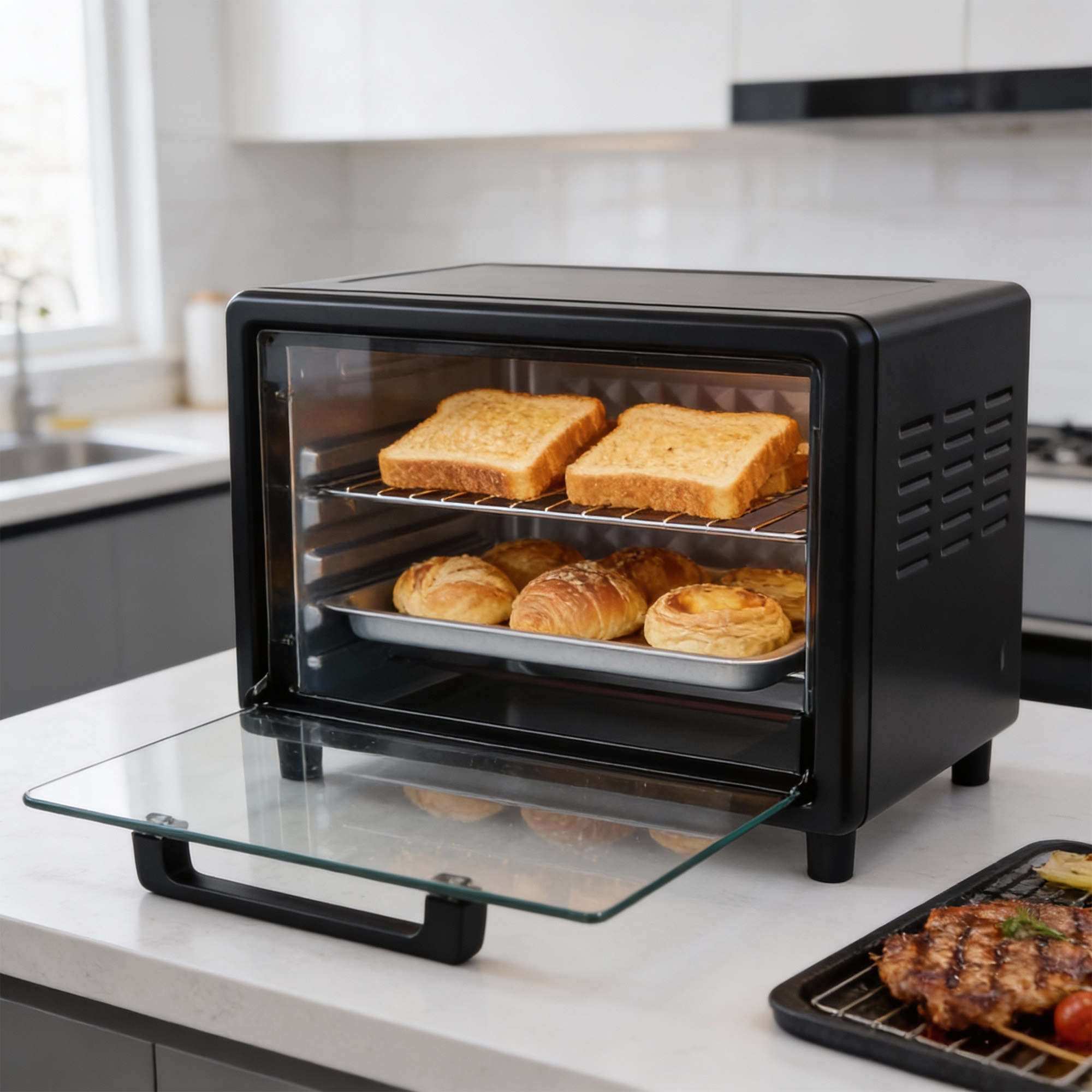 4 وظائف في جهاز واحد: تحميص – خبز – شوي – تسخين