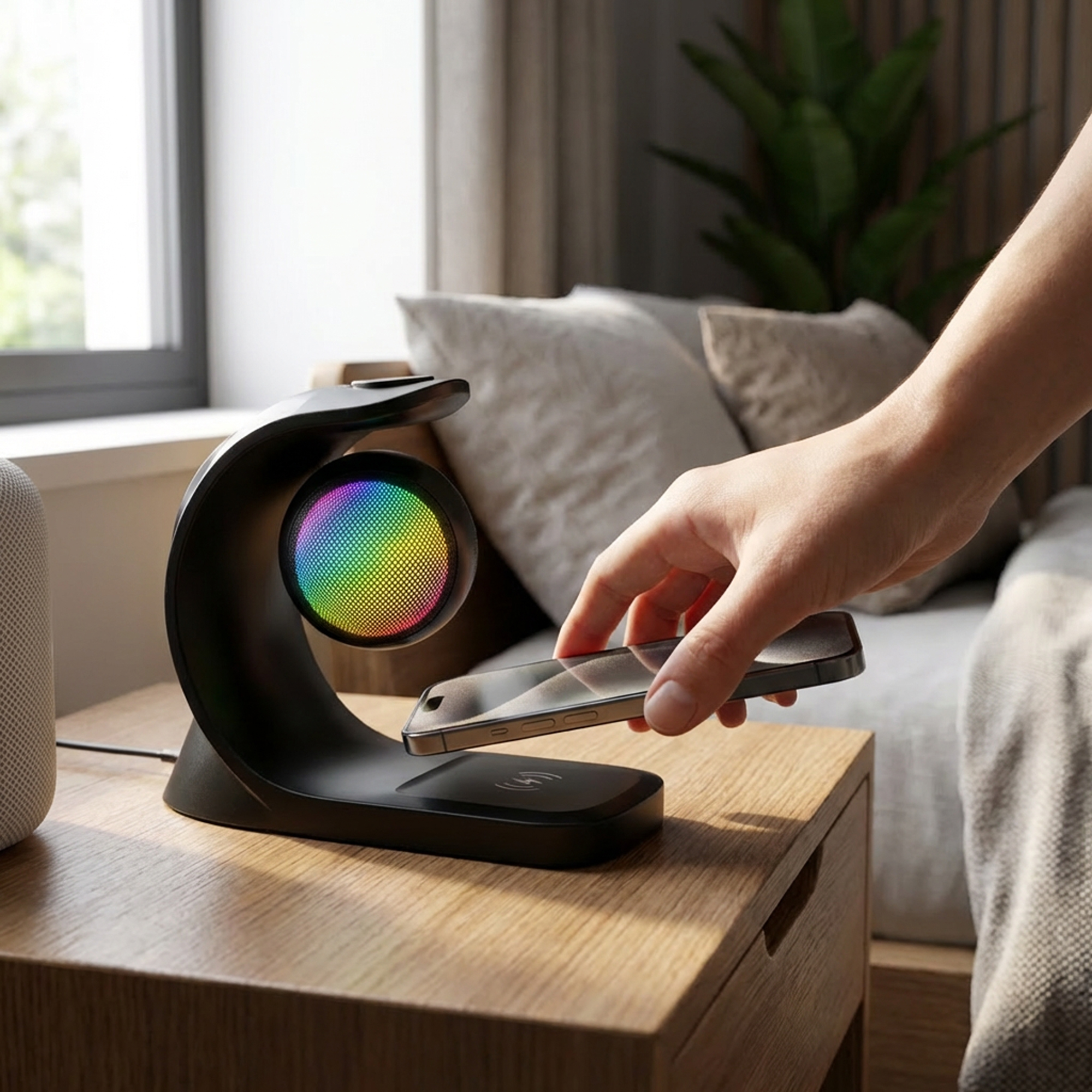 ضع جوالك أو سماعاتك أو ساعة أبل على المكان المخصص