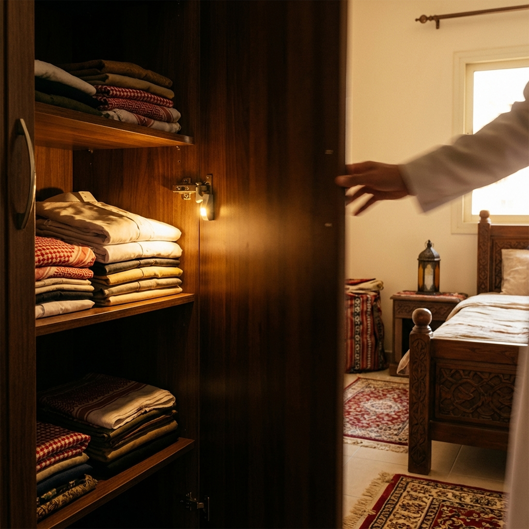 زاوية إضاءة دافئة تضيف لمسة جميلة وخفيفة على خزانتك