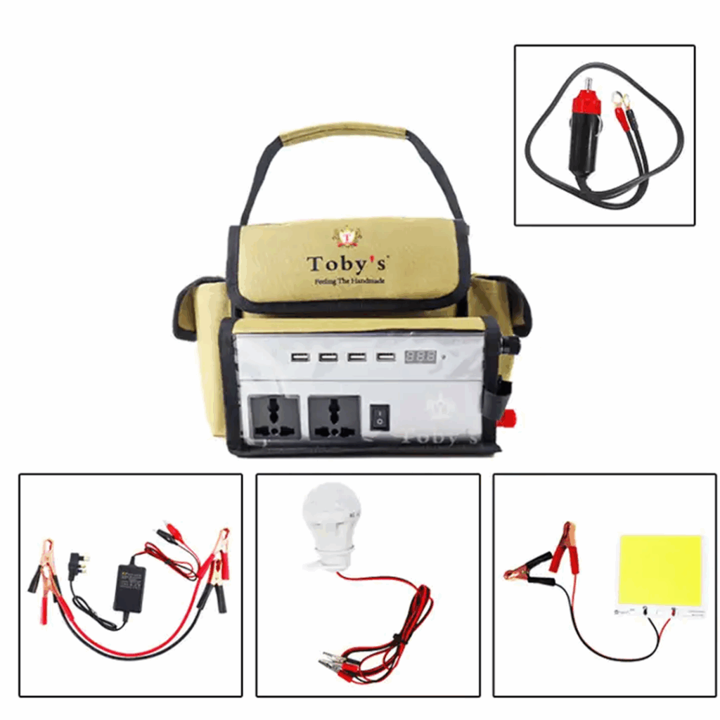 • بطارية قابلة للشحن 25000 مللي أمبير في الساعة للتخييم مع محول طاقة 12 فولت – 220 فولت.