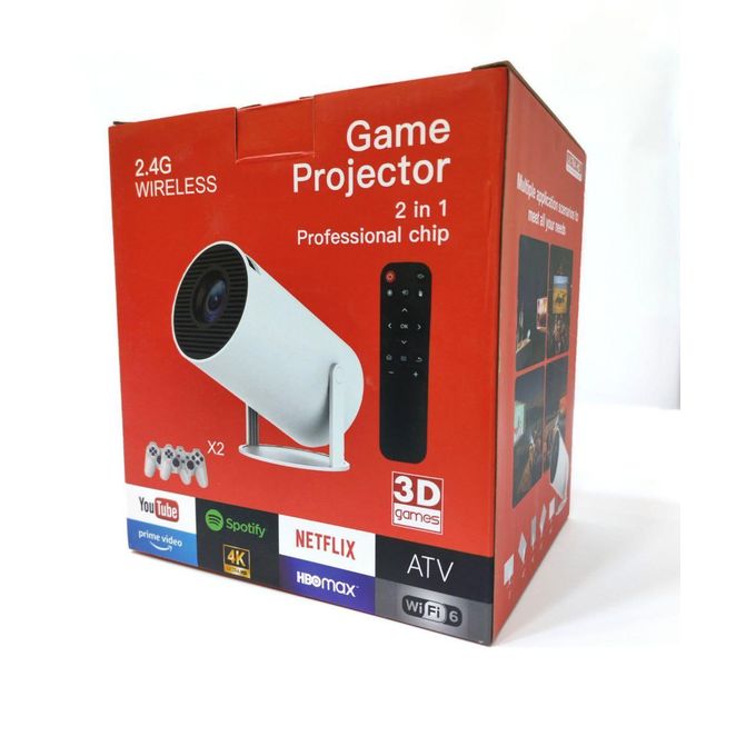 تجربة الألعاب المثالية: تأتي مع وحدتي ألعاب مع دونجل USB، بالإضافة إلى فتحة بطاقة SD. يتضمن بطاقة TF سعة 64 جيجابايت محملة مسبقًا بـ 10000 لعبة جاهزة للعب، مما يلغي الحاجة إلى أجهزة ألعاب خارجية.، عرض عالي الدقة: انغمس في صور مذهلة بدقة أصلية تبلغ 1280 × 720 بكسل، مما يضمن صورًا حادة وواضحة لتجربة مشاهدة محسنة.، سطوع مثير للإعجاب: يتميز هذا الجهاز بسطوع 120 لومن ANSI، ويوفر عروضًا نابضة بالحياة ومضاءة جيدًا، مما يجعله مناسبًا لظروف الإضاءة المختلفة.، نظام تشغيل متعدد الاستخدامات: تنقل بسلاسة مع نظام التشغيل Android 11.0، مما يوفر واجهة سهلة الاستخدام والوصول إلى مجموعة واسعة من التطبيقات للترفيه والإنتاجية.