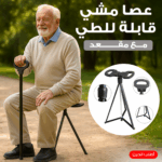 عصا مشي خفيفة تتحول في ثانية إلى مقعد ثلاثي ثابت. حل عملي لكبار السن، والمنتظرين لفترات طويلة، والرحلات والمعارض والطوابير.